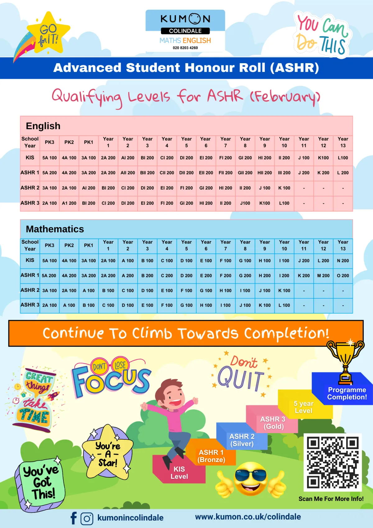My version has two QR codes. One QR code takes students/parents to my centre's ASHR Information web page, and the other takes students to a page that I created so that they can easily check their Standard Completion Times (SCTs) for each level.
